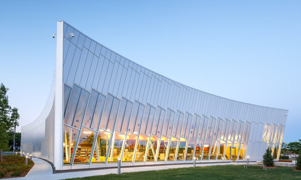 A biblioteca de recursos Vaughan Civic Centre pelo ZAS Architects é dedicada a ajudar as pessoas a aprender a usar ferramentas digitais e tecnologia do século 21 e seu design moderno e incrível, reflete esse objetivo. Envolta em uma fachada translúcida elegante, a biblioteca funciona como uma “peça central comunidade de transformação que visa capacitar os moradores de todas as idades e demografia.”