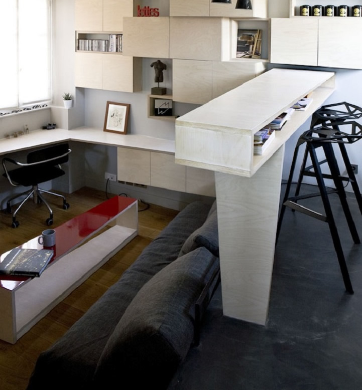 Os arquitetos Marc Baillargeon e Julie Nabucet tem inovado em seus projetos aproveitando espaços pequenos com muita criatividade. O apartamento localizado em Paris, na França, possui uma área um pouco maior, com móveis planejados para proporcionar conforto e ser extremamente funcional ao seu usuário, um jovem estudante solteiro. O pequeno espaço disponível do apartamento desafiou […]
