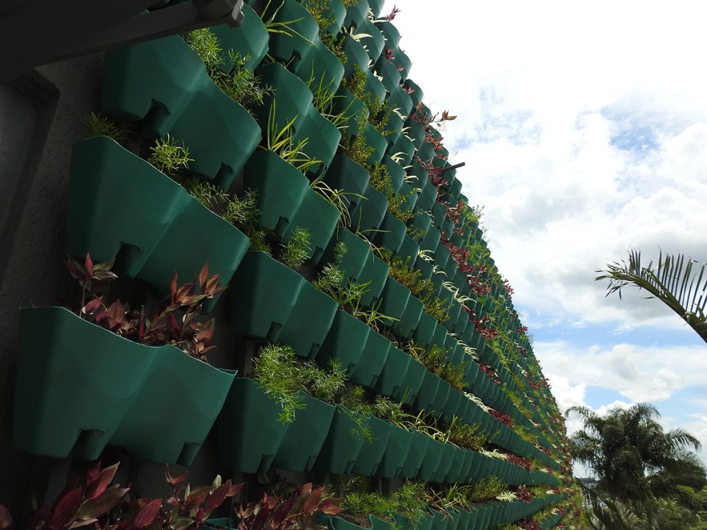 A proposta possui um sistema de irrigação simples e permanente, utilizando a água de reuso tratada no próprio prédio e custo e manutenção mínimos para deixá-lo ainda mais espetacular. A real exuberância acontecerá com o crescimento das plantas que concretizará o visual completamente.